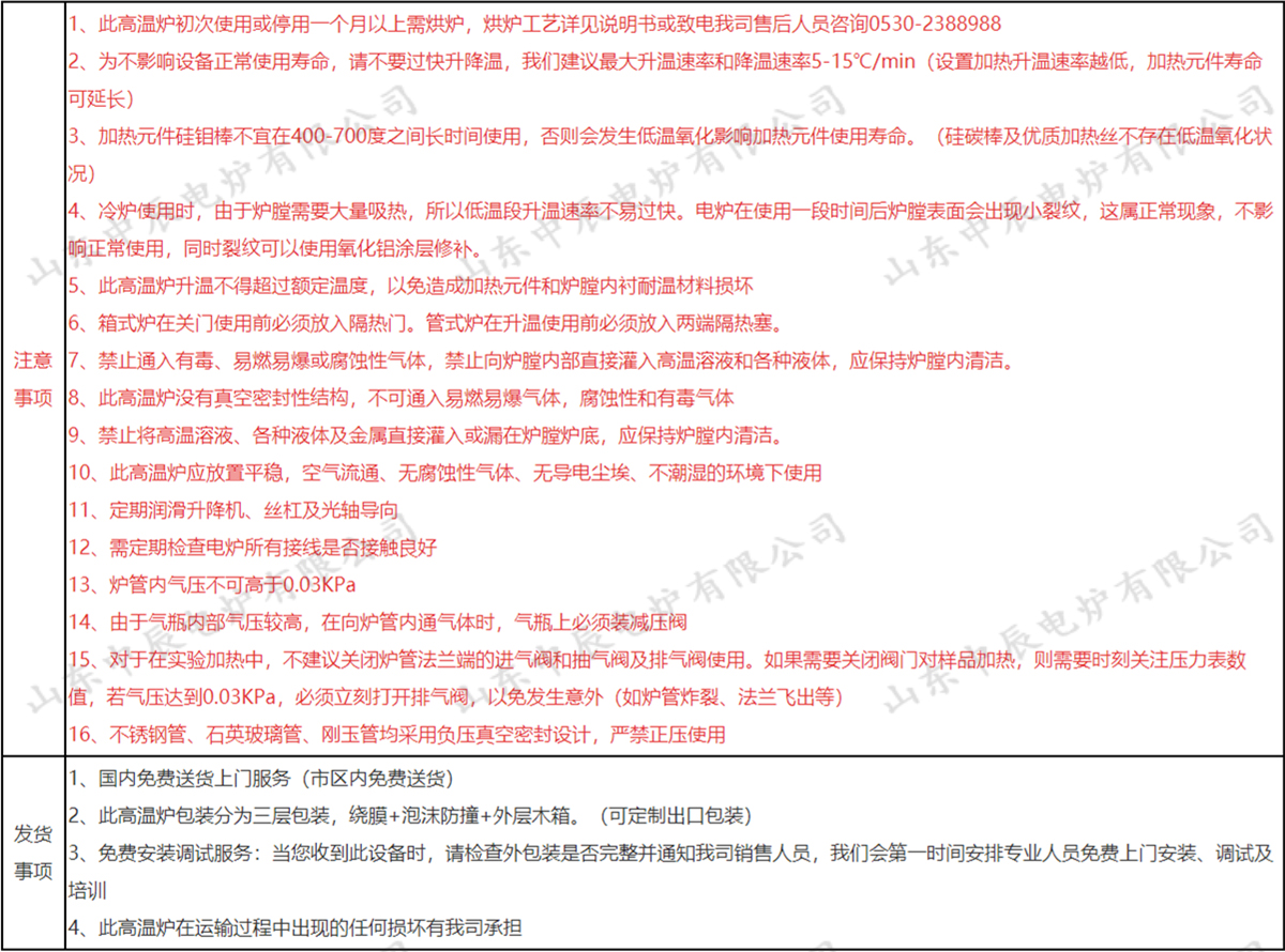 1、耗材如加熱元件、不銹鋼管/石英管/剛玉管、密封圈、樣品坩堝不包含在保修范圍內(nèi) |